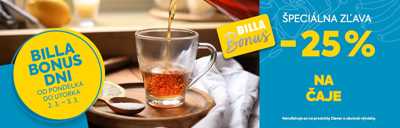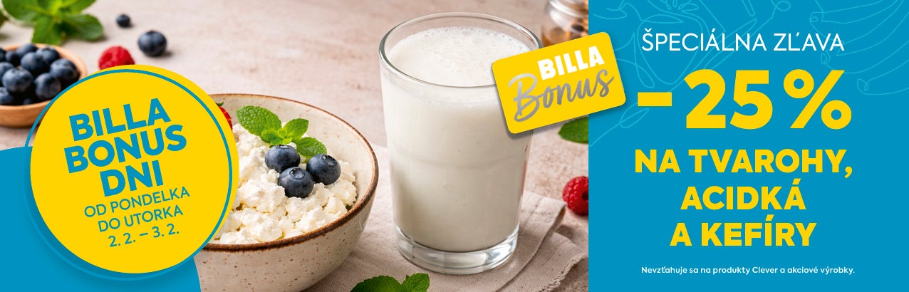 Nevzťahuje sa produkty Clever, BILLA Bio a akciové výrobky.