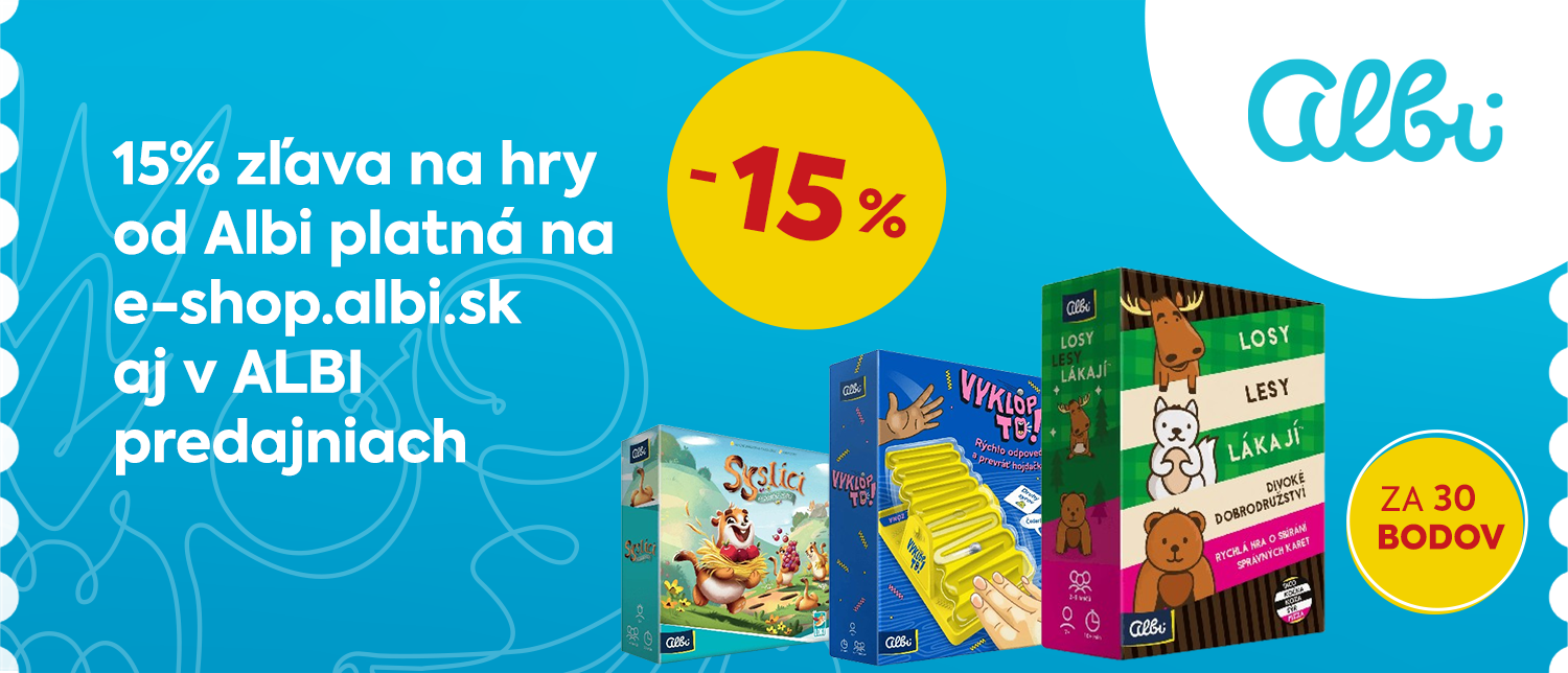 - Zľavu si možno uplatniť na e-shop.albi.sk alebo v ALBI kamenných