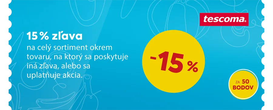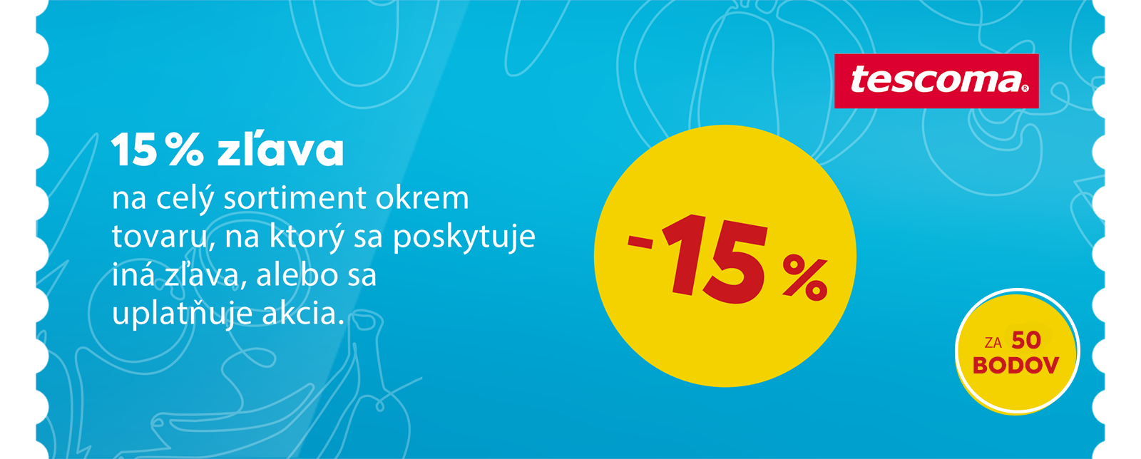 - Zľavu si možno uplatniť v internetovom obchode www.tescoma.sk a v kamenných predajniach TESCOMA s použitím zľavového kupónu.