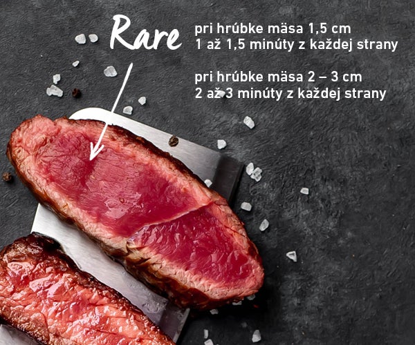 Avšak nesmiete zabudnúť ani na hrúbku mäsa, ktorú treba pri príprave zohľadniť. Inak sa môže stať, že steak, ktorý ste chceli mať medium bude pri hrubšom plátku stále rare, alebo naopak, pri tenšom už well done.