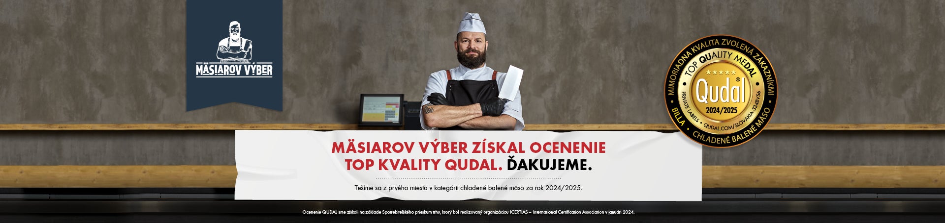 Vďaka vám sme získali prvenstvo mimoriadnej kvality chladeného baleného mäso v sieti supermarketov. Ocenenie QUDAL sme získali na základe Spotrebiteľského prieskum trhu, ktorý bol realizovaný organizáciou ICERTIAS – International Certification Association v januári 2024 na Slovensku a vzorke 1200 respondentov.