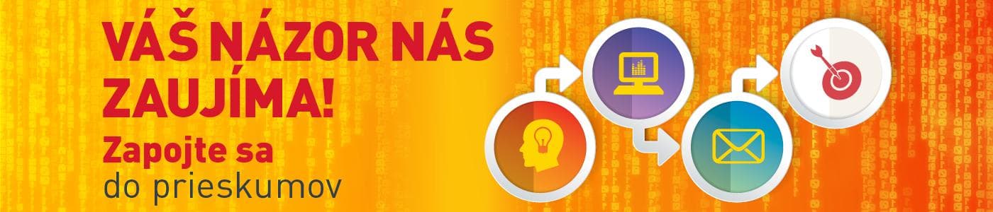 Pri účasti v Online Paneli Vám budeme v nepravidelných intervaloch zasielať e-mailom prieskum formou webového dotazníka. Dotazník bude vždy anonymný a získané údaje budú použité len na účely prieskumu. Odpovede sa nebudú priamo spájať s Vašou osobou. Vopred sa Vám chceme poďakovať za Váš drahocenný čas a názor.