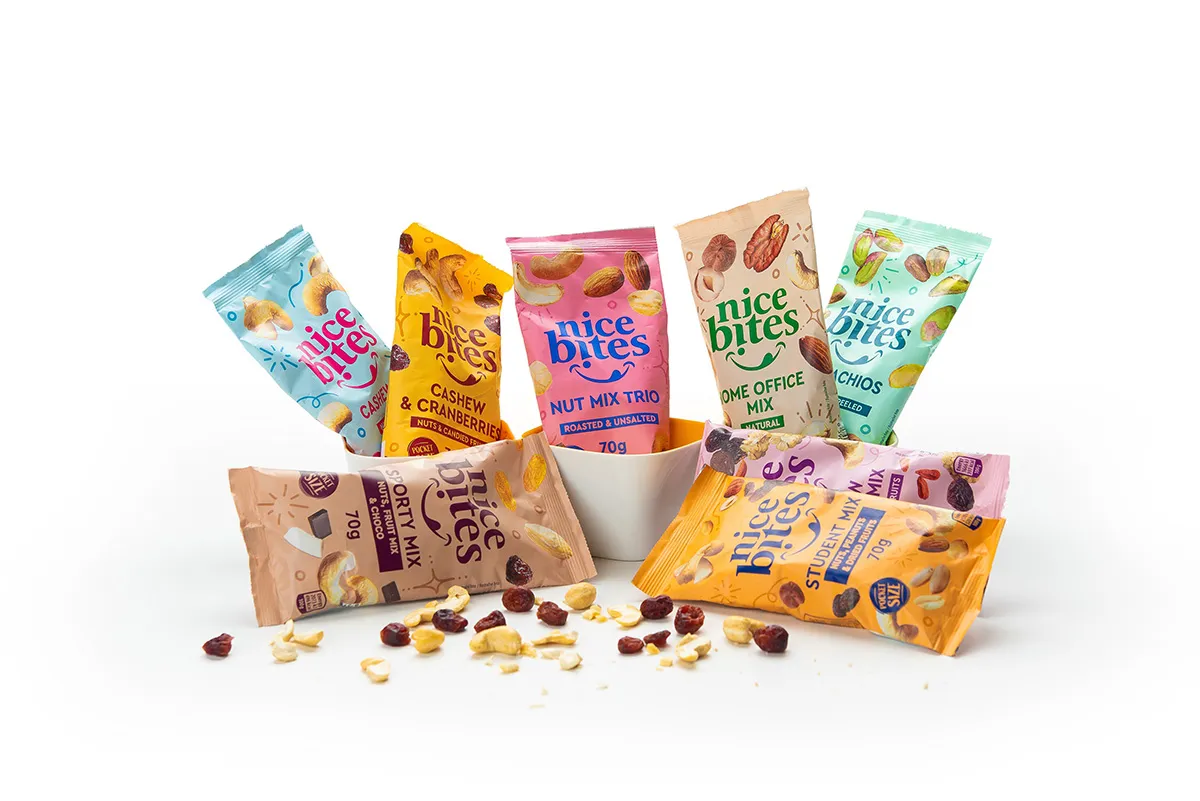 Širokú ponuku kvalitných orechov a sušeného ovocia hľadaj v predajniach BILLA, a to vďaka novej, modernej značke Nice Bites. Tieto snacky držia krok s dnešným aktívnym lifestylom. Či už sa chystáš na trek, maratón najnovších seriálov alebo len potrebuješ niečo na rýchle zahryznutie, značka Nice Bites má pre teba pripravené desiatky produktov – od naturálnych orechov cez sušené ovocie až po orechy so sladkou alebo slanou príchuťou. A aby toho nebolo málo, s „vreckovou“ produktovou líniou To go si môžeš tieto chutné snacky zobrať všade so sebou. Značku Nice Bites rozoznáš v supermarketoch BILLA ľahko – je hravá, veselá a farebná, pričom každá produktová línia má osobité dizajnové prevedenie. Príjemným bonusom je, že časť obalov sa dá znova zatvoriť.