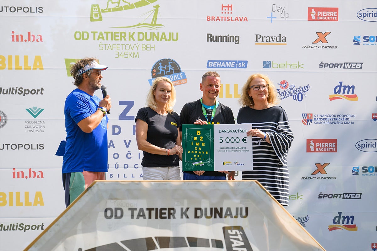 Doterajšiu úspešnú spoluprácu s NÚDCH potvrdilo o. z. BILLA ľuďom odovzdaním šeku v hodnote 5 000 eur. „Štafeta, ktorú sme cez víkend spoločne absolvovali, našu spoluprácu posunula na ďalšiu úroveň. Aktivity, ktoré BILLA robí v súvislosti s prevenciou a starostlivosťou o detský zrak, sú veľmi záslužné. Teším sa, že naša dlhoročná spolupráca bude pokračovať aj ďalej,“ zhodnotil Peter Bartoň, ktorý krátko po dobehnutí do cieľa dostal od zástupkýň spoločnosti BILLA Slovensko darovací šek. Klinika detskej oftalmológie túto sumu využije na nákup špecializovaných prístrojov a pomôcok.