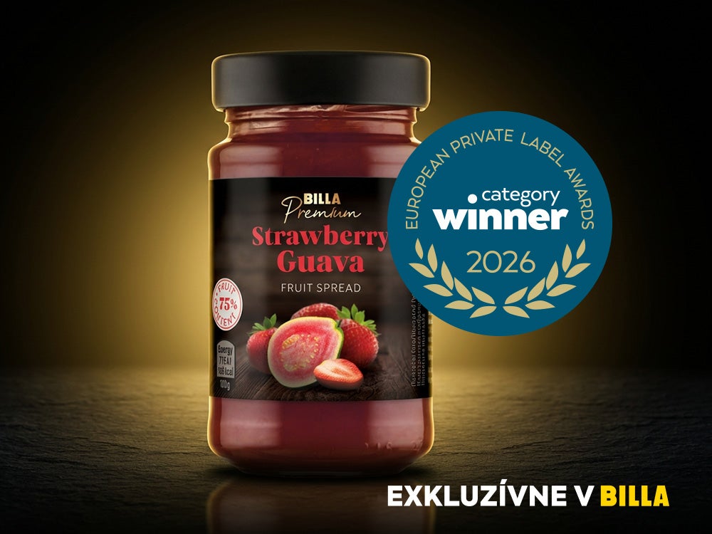 Víťazmi European Private Label Awards 2026 sa stali dva výrobky BILLA Premium. Novinka na trhu, ovocná nátierka s jahodami a guavou, ohúrila porotu v kategórii Raňajkové produkty. S vysokým podielom ovocia – až 75 % – sa skvele hodí nielen na raňajky a desiatu, ale aj na pečenie či ako doplnok k syrom.