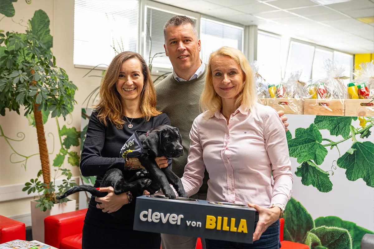 Pomocnú ruku pri výchove vodiaceho psa sa rozhodla podať aj spoločnosť BILLA so svojím občianskym združením BILLA ľuďom. „Po pozitívnej skúsenosti z minulosti, keď sme už úspešne podporili výcvik vodiaceho psa, sme sa rozhodli ísť do toho znovu. Preto sa veľmi tešíme, že v našej BILLA rodine môžeme privítať novú členku, Clever von BILLA, nad ktorej výcvikom sme prevzali patronát. Pevne dúfame, že po absolvovaní výcviku sa pre niekoho stane nenahraditeľným pomocníkom na celý život,“ povedala Jana Gregorovičová, CSR manažérka v BILLA Slovensko.