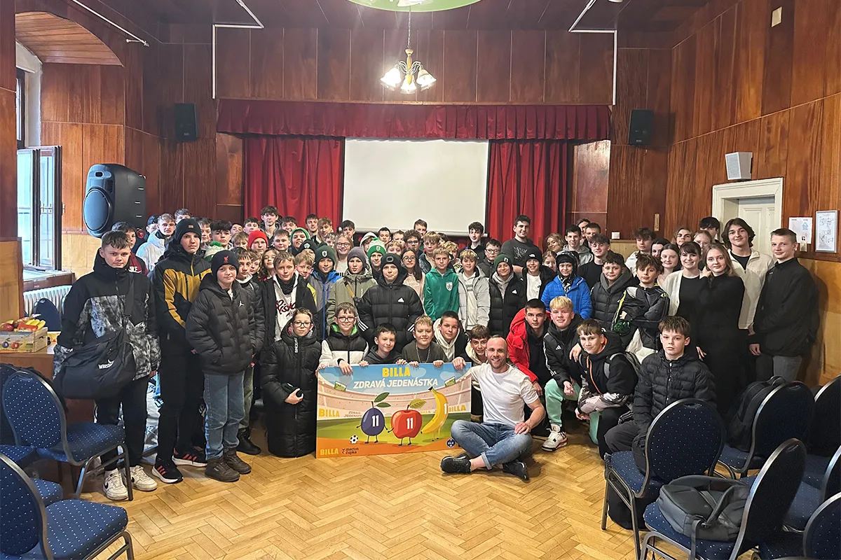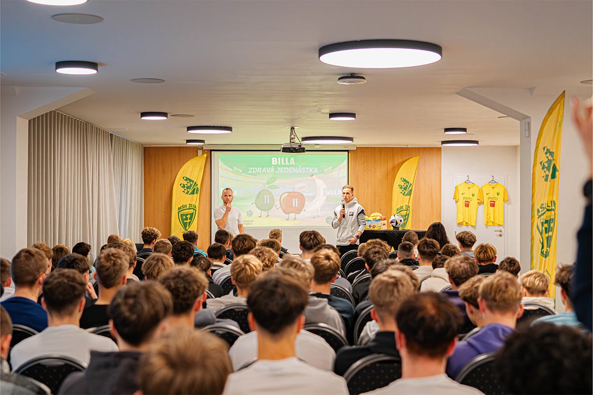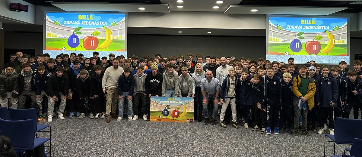 Kým profesionálni hráči okrem tréningu a rehabilitácie neopomínajú ani stravu a pitný režim, dospievajúce športovkyne a športovci sa vo výžive nie vždy správne orientujú. Spoločnosť BILLA, ktorá dlhé roky patrí medzi hlavných podporovateľov športu, pohybu a zdravého životného štýlu, preto prišla so zaujímavým konceptom interaktívnych workshopov ZDRAVÁ JEDENÁSTKA. V spolupráci s výživovým špecialistom Martinom Čupkom navštívila BILLA v januári aj mladé futbalové talenty v najúspešnejšom slovenskom klube – ŠK Slovan Bratislava. Športovci okrem odporúčaní o tom, ako vhodne zvolenou stravou zvýšiť rýchlosť a vytrvalosť, predchádzať zraneniam a podporiť imunitu či koncentráciu pri vyučovaní, dostali od spoločnosti BILLA aj čerstvé ovocie.