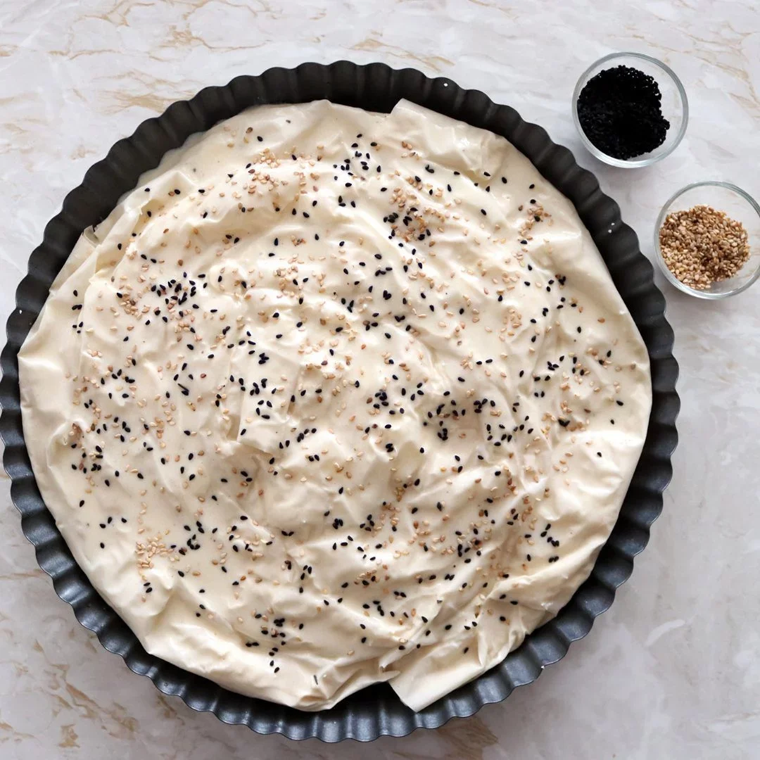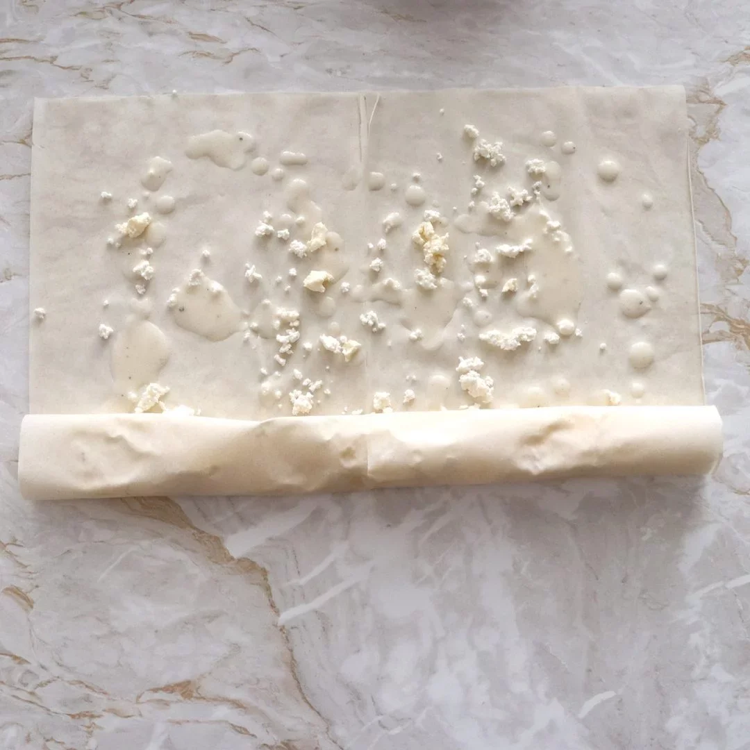 - 10-12 plátov tenkého štrúdľového cesta (asi 30×40 cm)