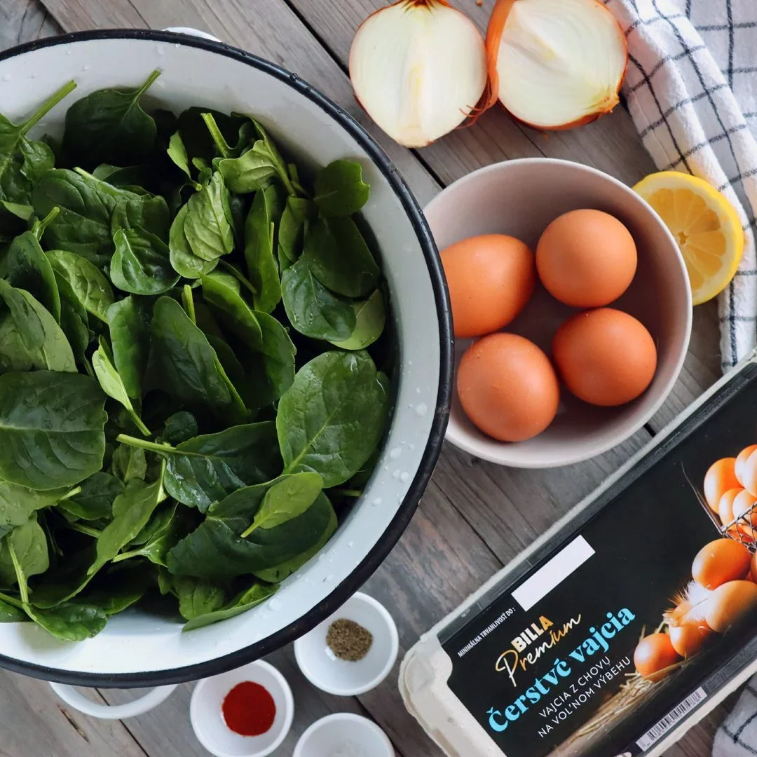 Na tento recept použijeme čerstvý špenát. Ide síce o tradičné spojenie špenátu a vajec ale v trochu modernejšom, vylepšenom prevedení. Vlastne kvalita surovín a ich čerstvosť budú moderné vždy.