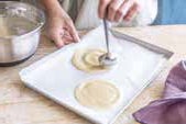 Plochý plech vysteľte papierom na pečenie a pomocou malej naberačky dajte zmes na plech.