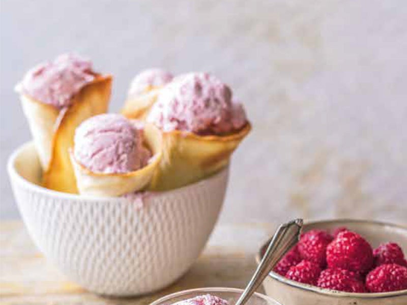 Upečené cesto vyberte z rúry a rýchlo vyformujte zmrzlinové kornútiky pomocou kužeľa.