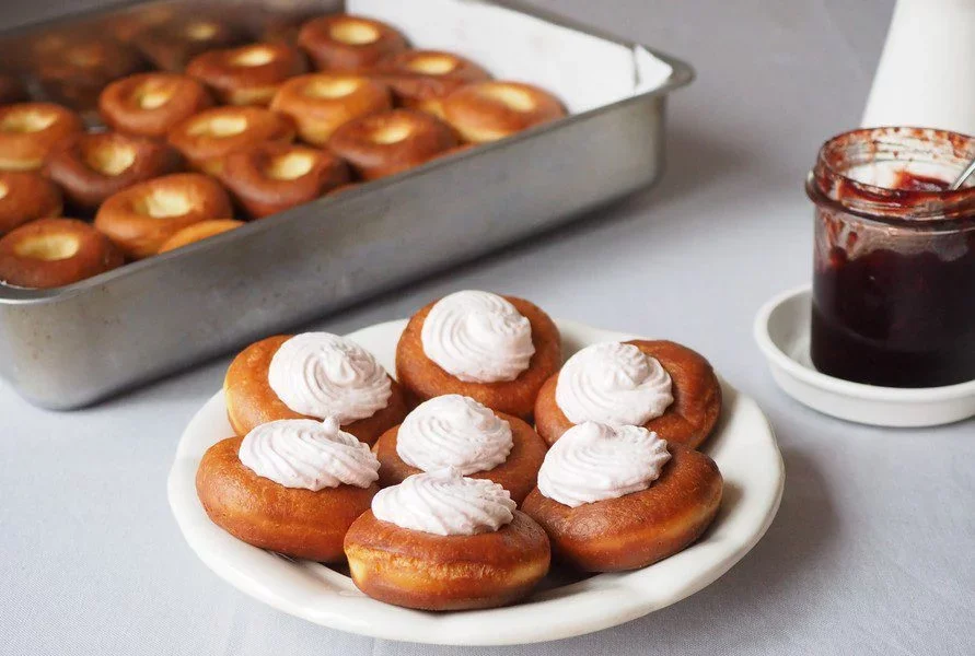Vyberieme, necháme odkvapkať. Pred podávaním nanesieme do priehlbinky ovocnú penu.