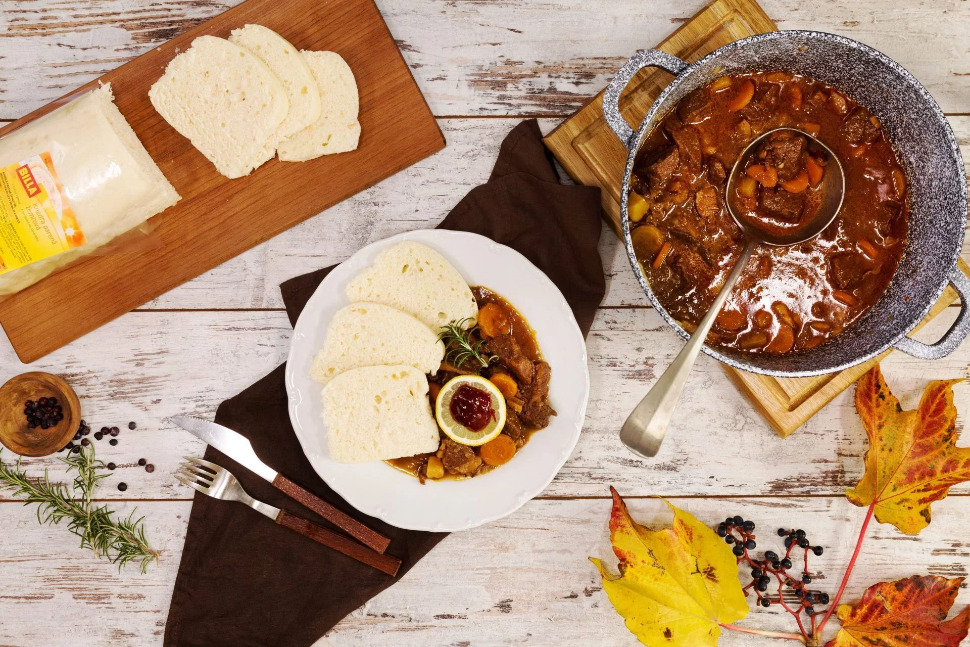 - borievky, nové a čierne korenie, soľ, bobkový list, mletá červená paprika, mletá rasca a rozmarín
