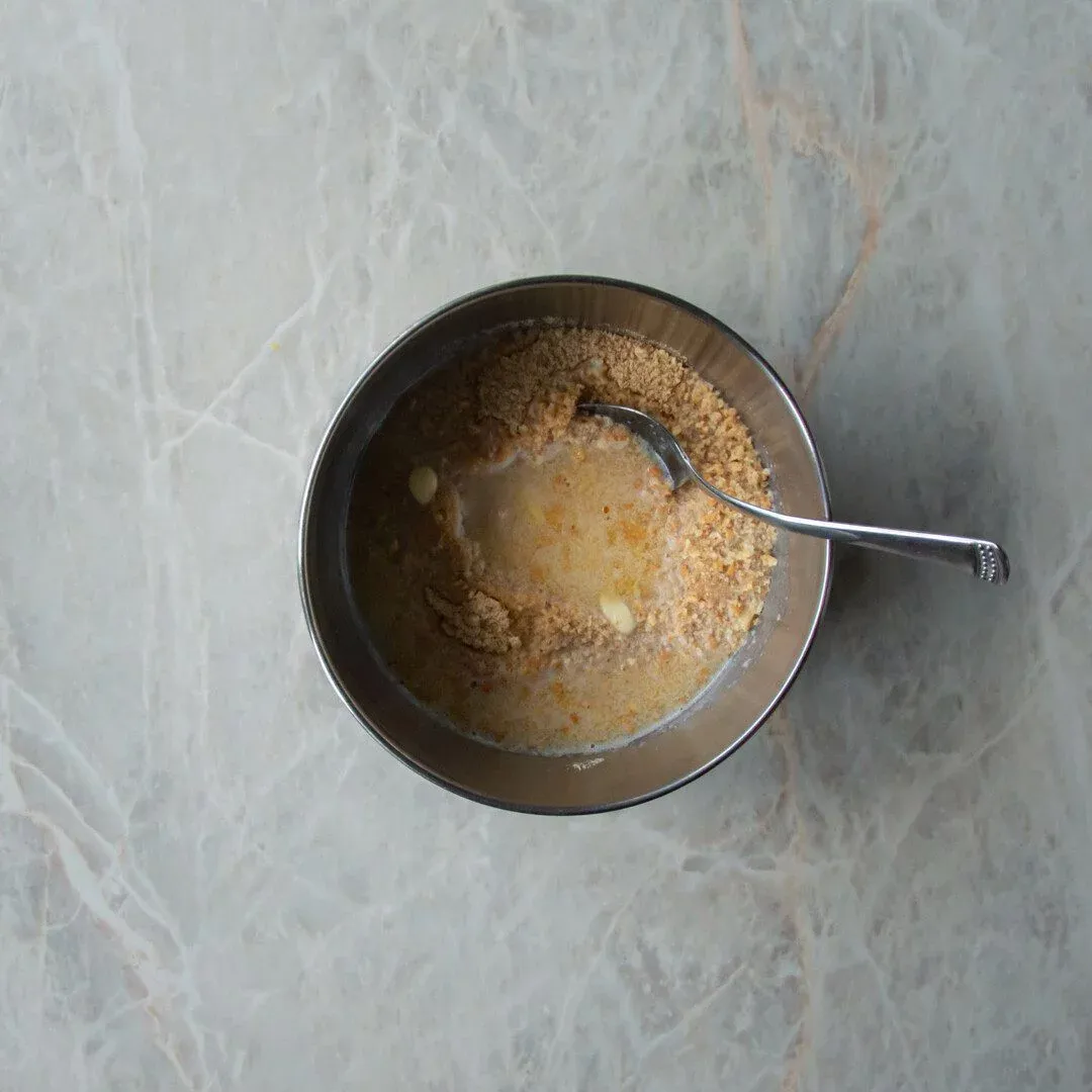 - Krok 1Začneme sušienkami, ktoré v mixéri rozmixujeme na jemno. V malom kastróliku rozpustíme maslo a pridáme ho k sušienkam. Všetko dobre premiešame a odložíme nabok.