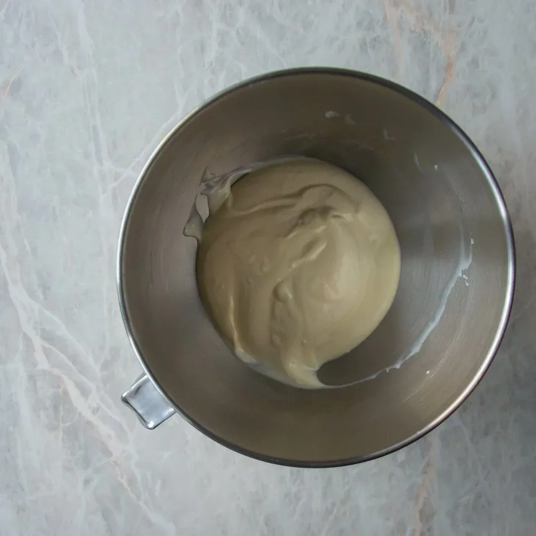 Zvyšok kondenzovaného mlieka, teda ¼ plechovky potom zmiešame s ½ plechovky karamelu. Zmes tiež vyšľaháme a získame hladký a tekutejší karamel.