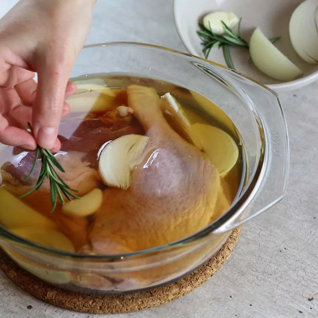 - Soľ, čierne korenie a bobkový list