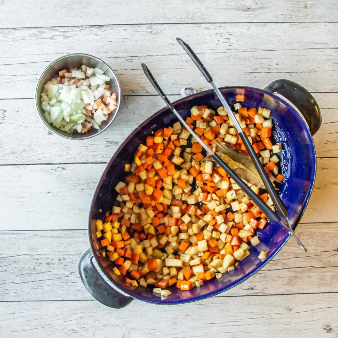 - 300 gkoreňovej zeleniny nakrájanej na malé kocky