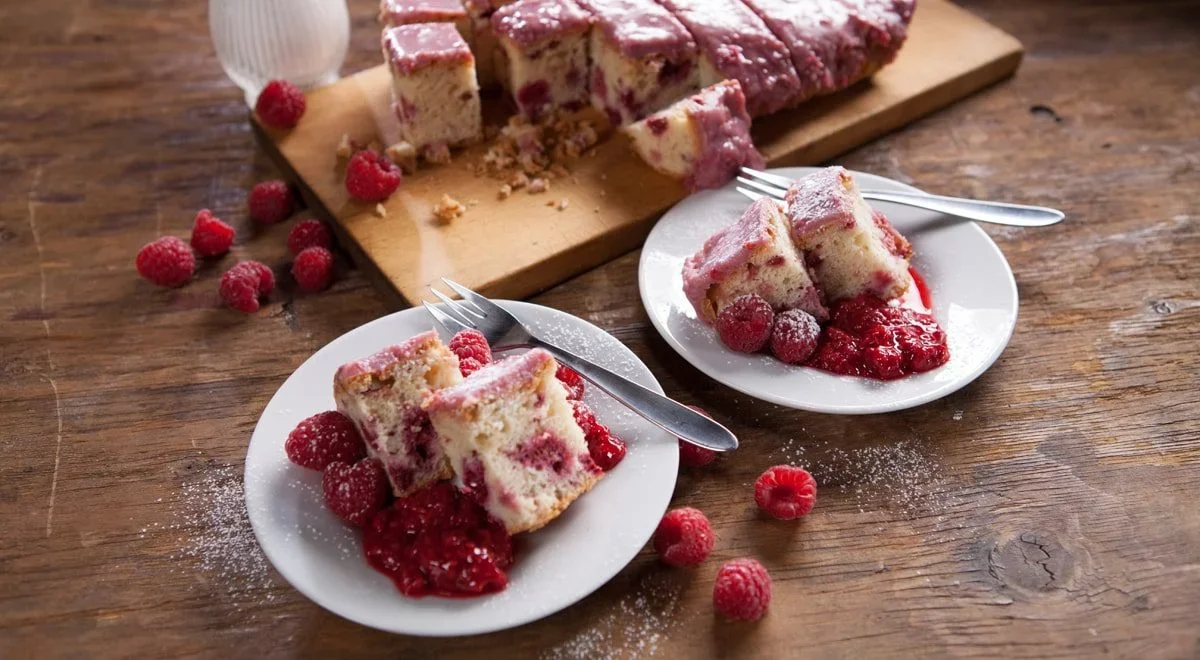 Vynikajúca malinová piškóta zo špaldovej múky s mrazenými malinami a polevou z bielej čokolády a malín. Zužitkujte v zime mrazené ovocie.