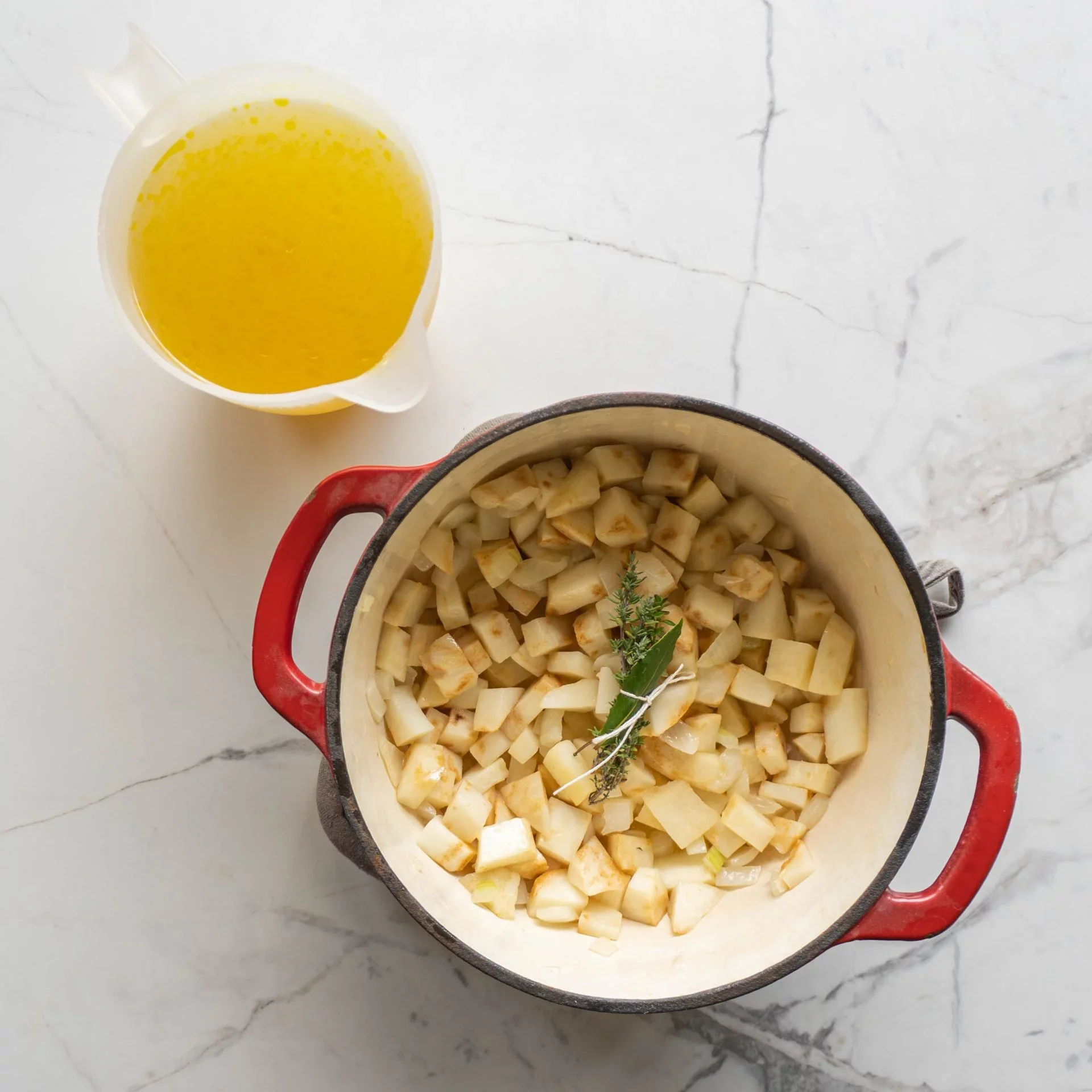 - čerstvé bylinky (tymian, bobkový list)