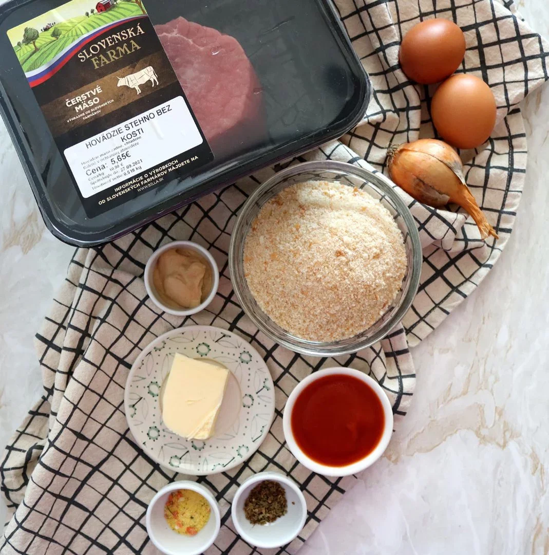 - 600 gbravčového alebo hovädzieho mäsa vhodného na rezne