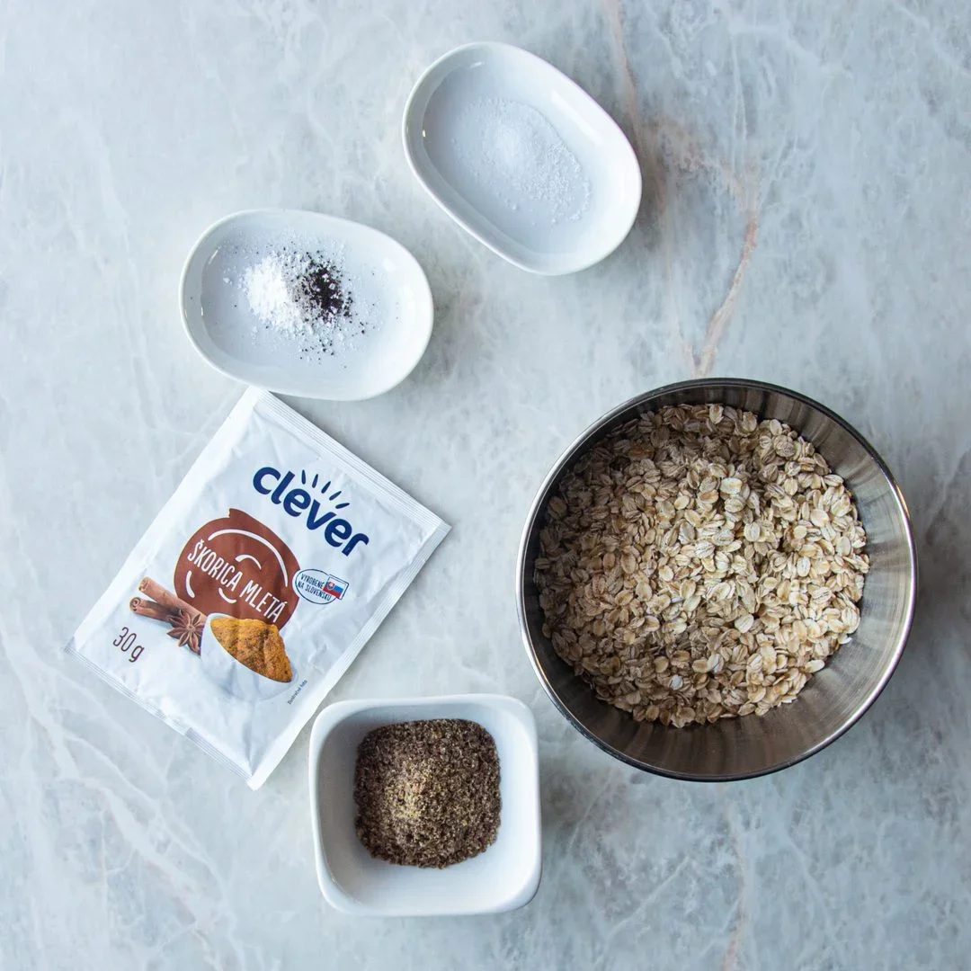 - 1,5 hrnčeka ovseného, iného rastlinného, alebo kravského mlieka, podľa vášho stravovacieho režimu