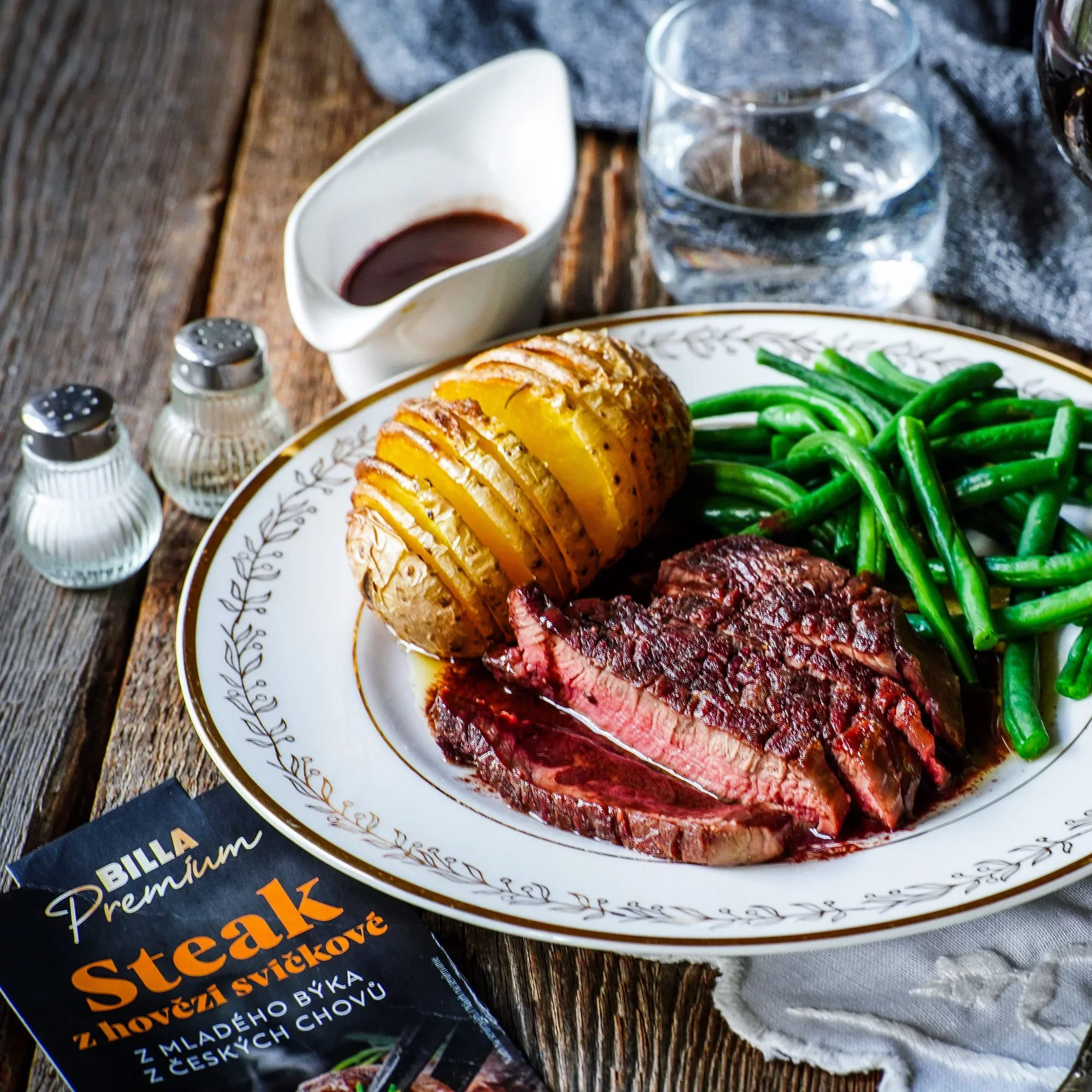 V našom prípade po omáčke z červeného vína s trochou čokolády. Nedivte sa, čokoláda dá omáčke silu, samozrejme, nesmiete to s ňou prehnať. A s dobre ugrilovaným steakom z hovädzej sviečkovice funguje dokonale. Prílohu si zvoľte podľa seba. My vždy radi siahneme po pečenom zemiaku a zelenej fazuľke pripravenej na masle. Dokonalosť!