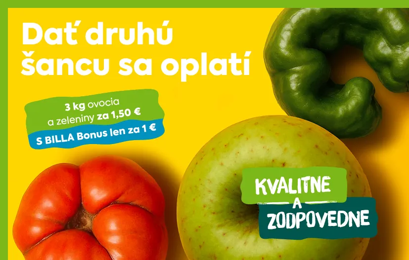 S BILLA BONUS je možné získať balenie 3 kilogramov ovocia a zeleniny za symbolické 1 euro.